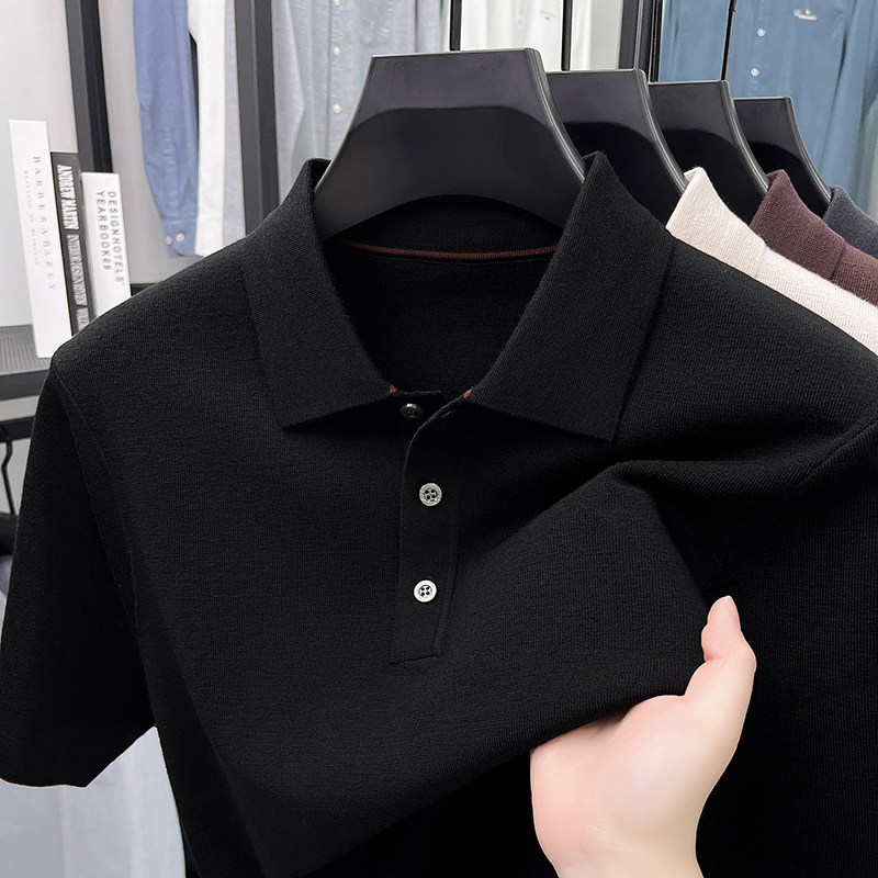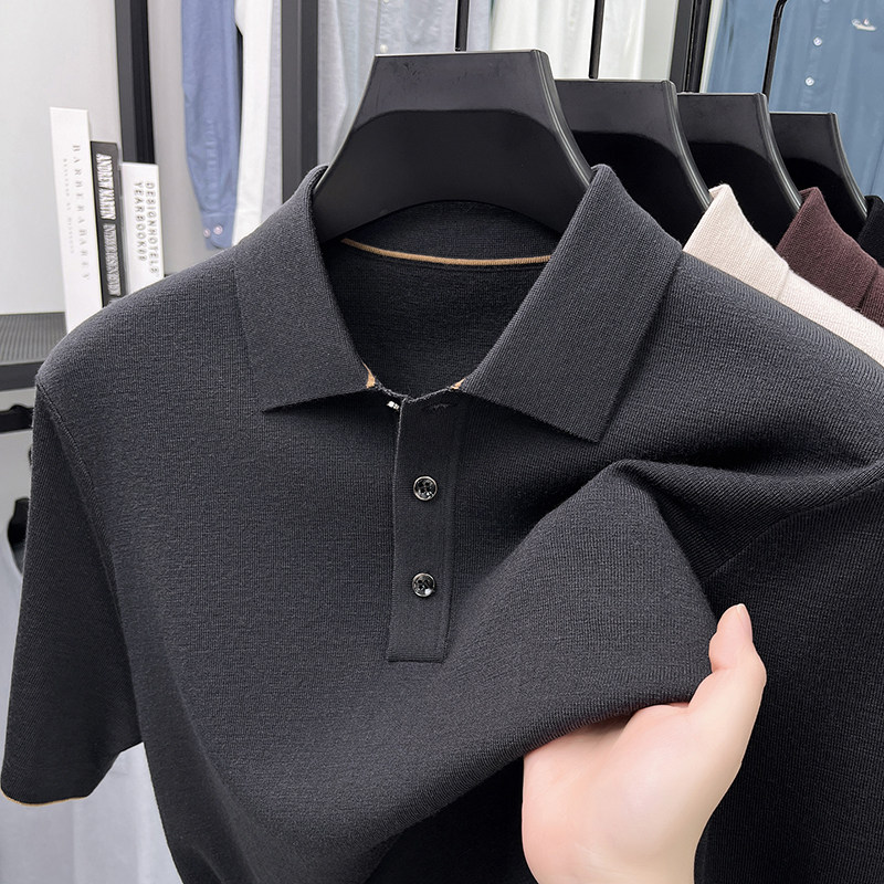 轻奢款精纺可机洗短袖男羊毛衫冬季翻领毛衣中年纯色半袖打底针织