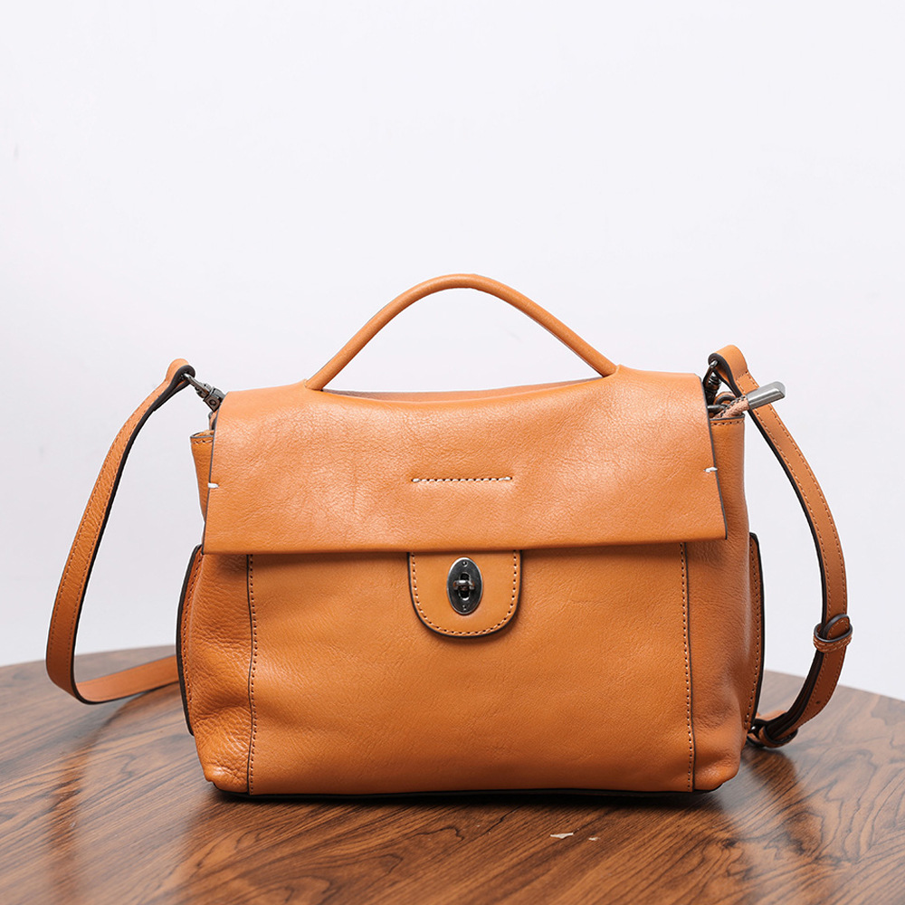 手工复古原创100%进口头层植鞣牛皮女士单肩斜挎包真皮女士邮差包