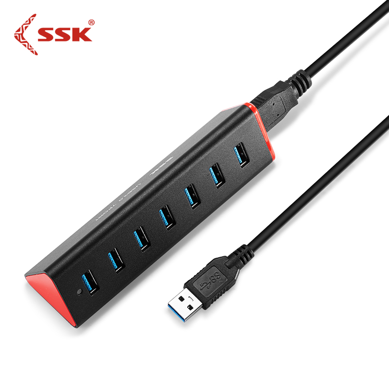 SSK一拖七口USB3.0带电源高速分