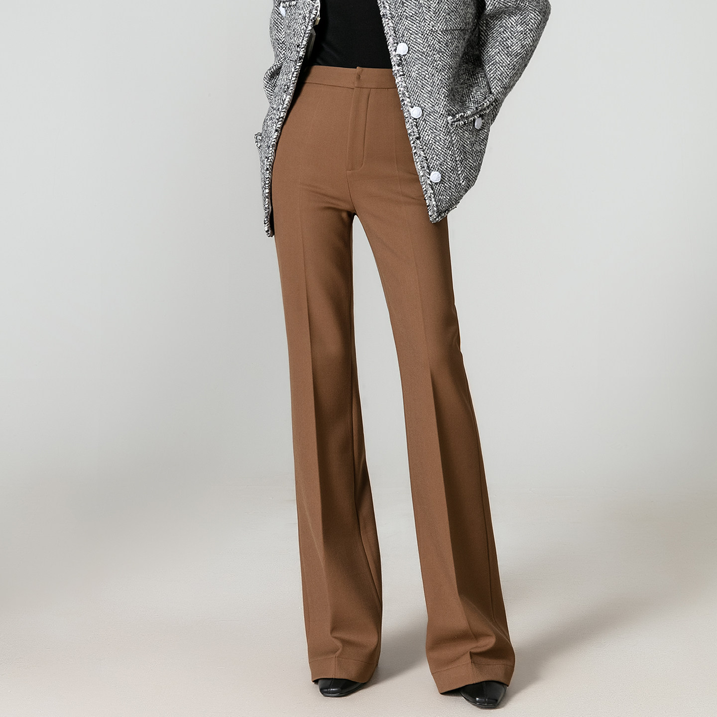 曼依拉加厚显瘦垂感微喇裤女美拉德咖色喇叭裤秋冬西装阔腿长裤子