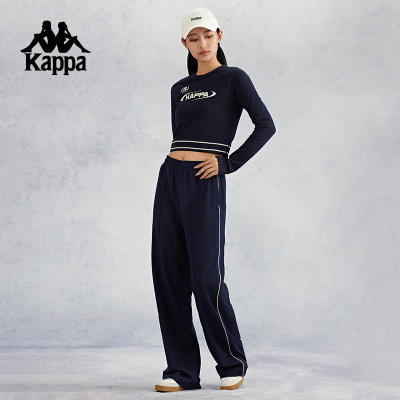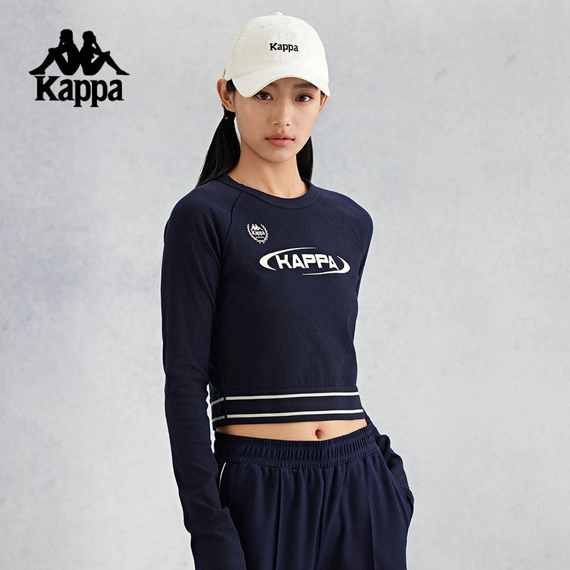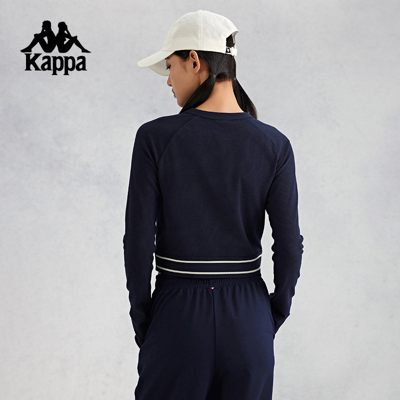 Kappa卡帕背靠背运动卫衣女款2024新款复古圆领套头衫短款长袖t恤
