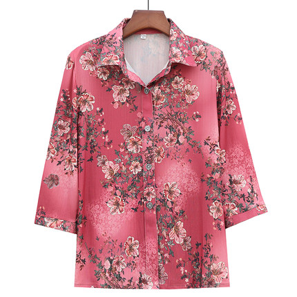 奶奶春秋外套中老年人春装女喜庆婆婆老太太衣服妈妈夏装雪纺衬衫