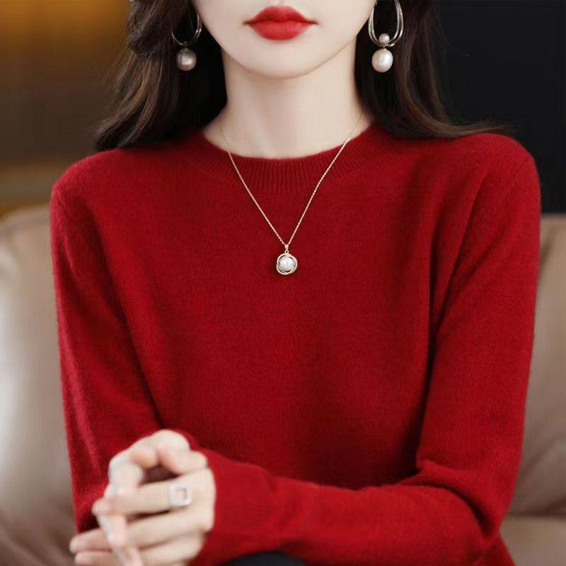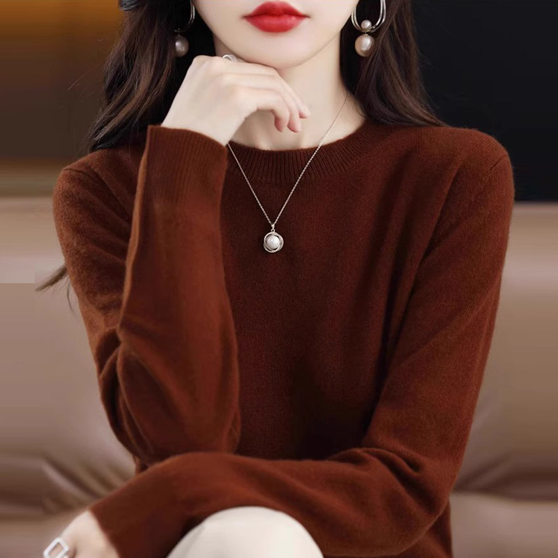鄂尔多斯市100羊毛衫女2025秋冬新款羊绒打底衫短款宽松套头毛衣