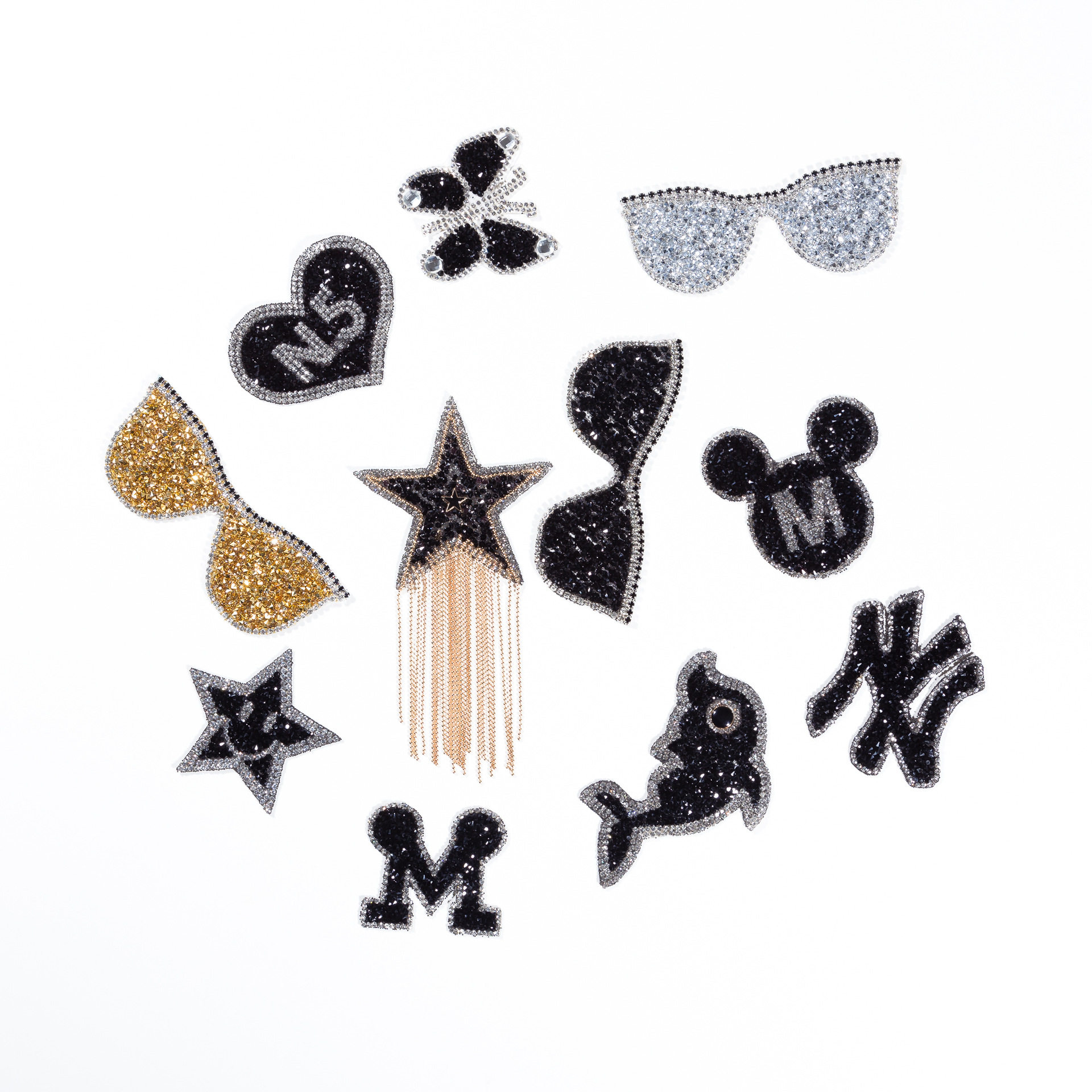 时尚流苏五角星布贴烫钻眼镜肩章表演服鞋帽装饰小号米头补洞贴
