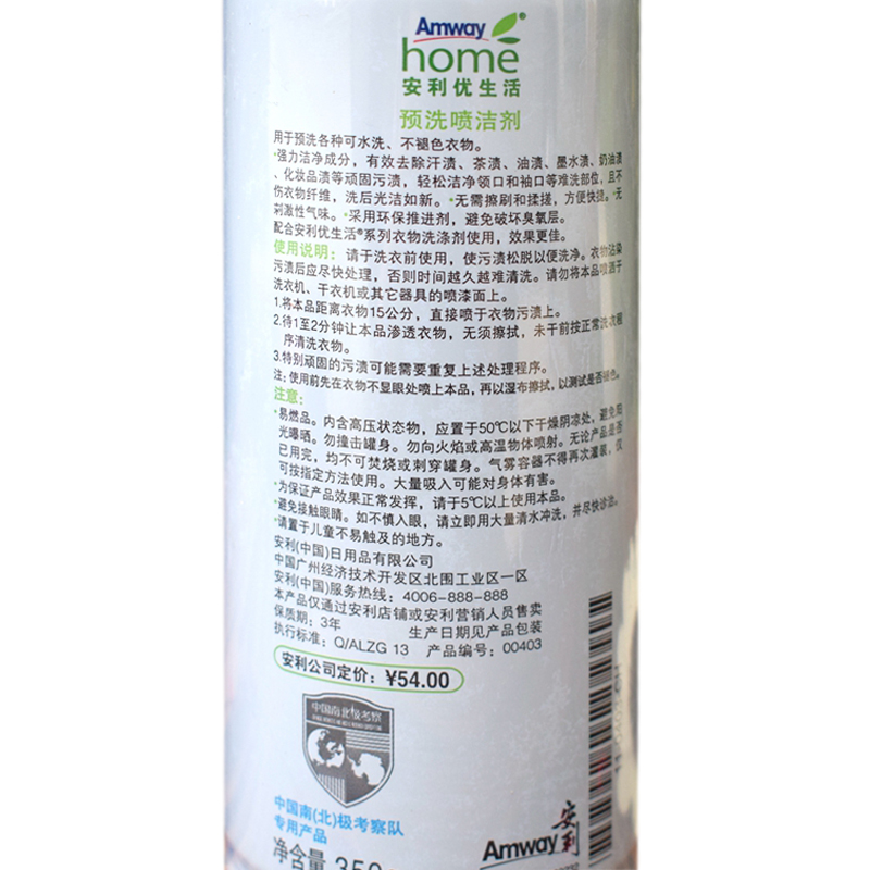 安利优生活预洗喷洁剂350g衣领净洗衣液预洗喷剂清洁衣物袖口污渍
