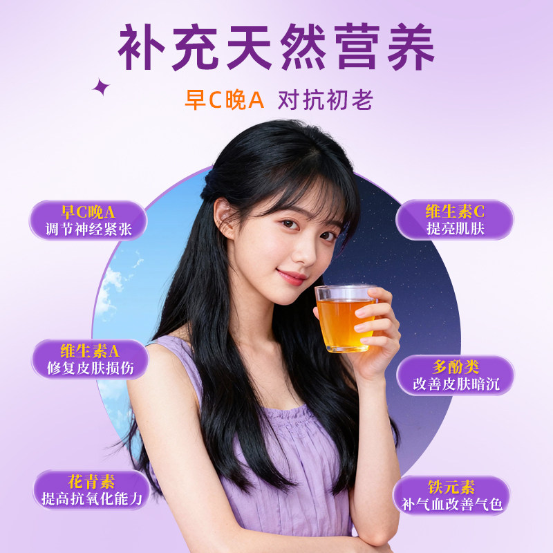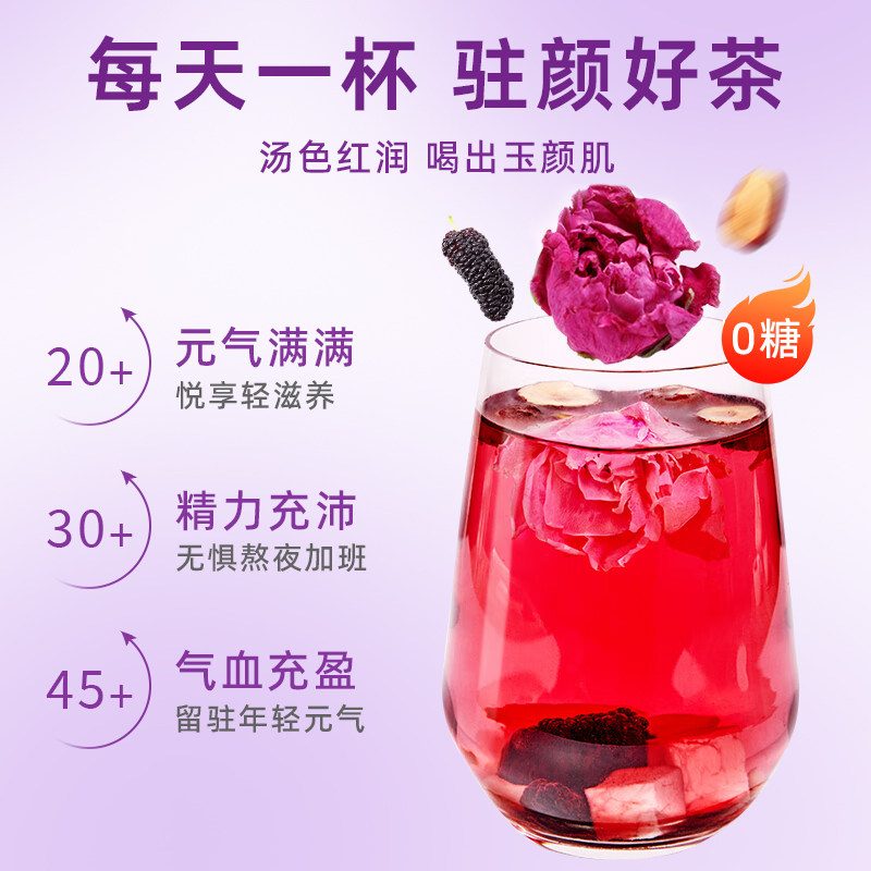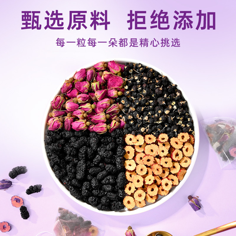 黑枸杞桑葚干玫瑰花茶组合红枣早C晚A茶花青素熬夜养生茶包泡水喝