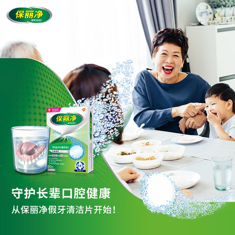 保丽净假牙清洁片60片全半口义齿牙套泡腾片清洗液洁剂宝丽保利净