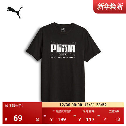 纯棉黑色印花休闲短袖T恤男PUMA彪马官方新款户外运动上衣 686374