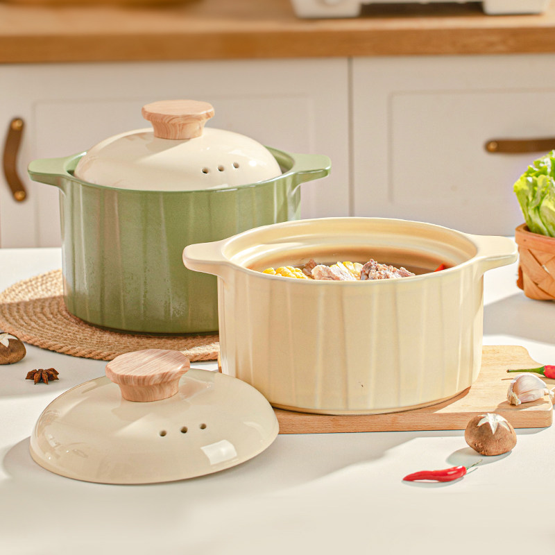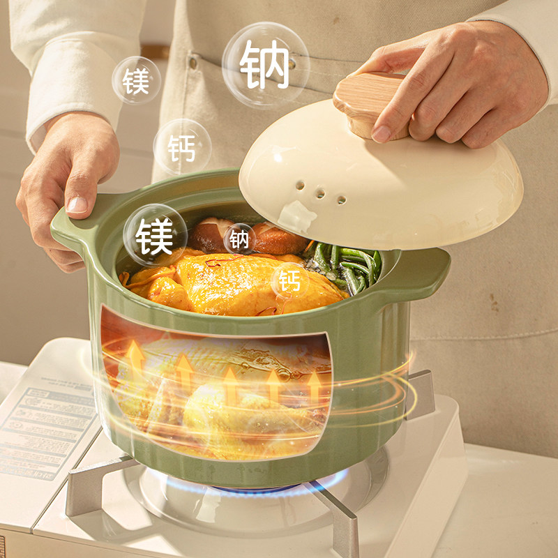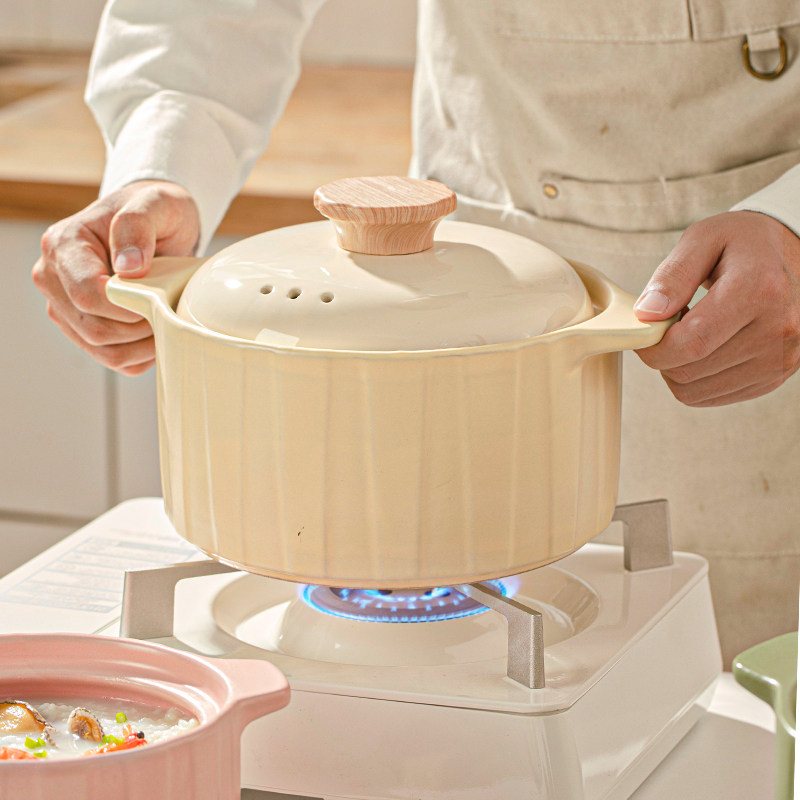 奶油风砂锅炖锅家用煲汤锅耐高温燃气灶专用陶瓷沙锅大容量汤煲