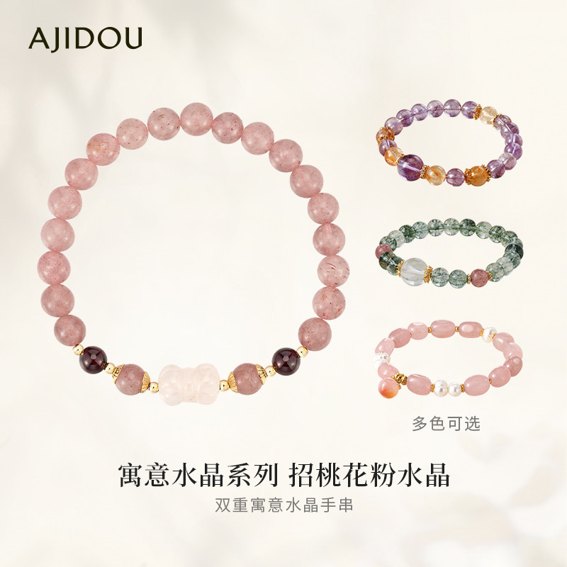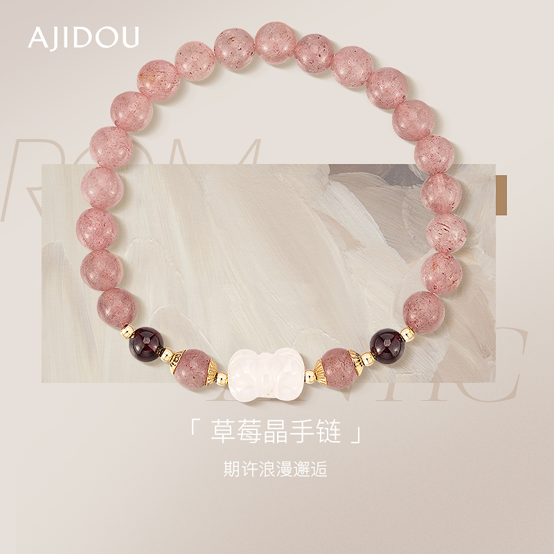 AJIDOU阿吉豆手链粉色水晶石榴石玉髓招桃花招财草莓晶手串首饰品