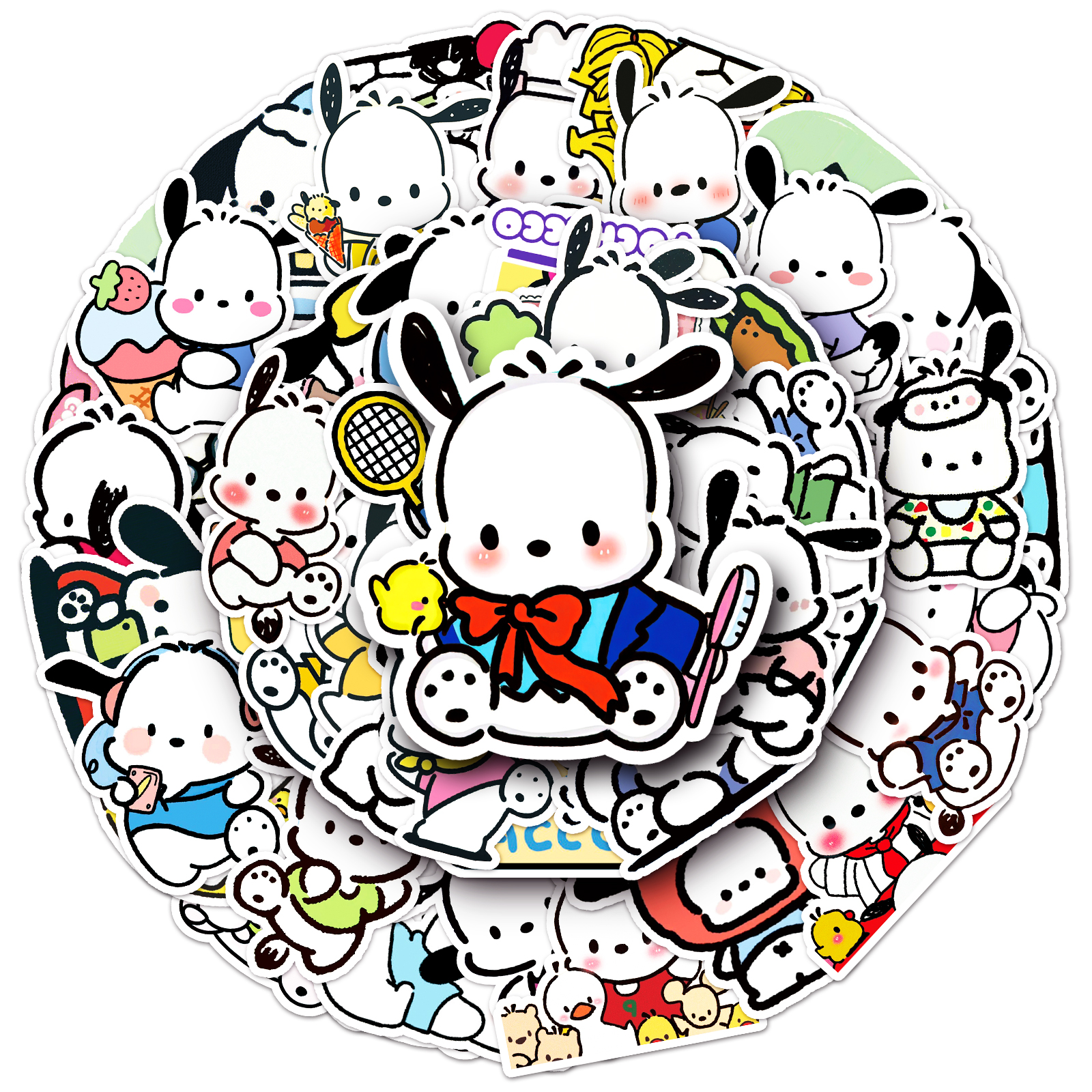 100张帕恰狗贴纸三丽鸥可爱呆萌小狗卡通图案装饰贴画手机壳吉他行李箱电脑冰箱手账文具平板电动车防水贴纸