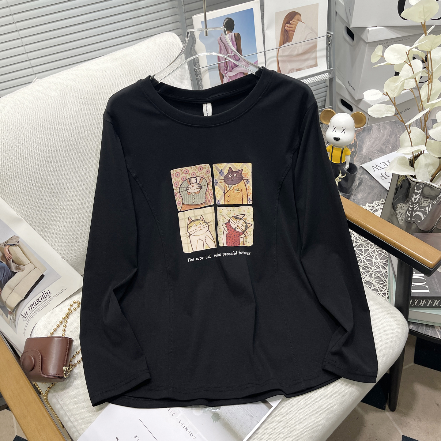 胡子叔大码女装秋季新款正肩长袖T恤胖mm时尚百搭简约内搭打底衫