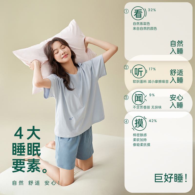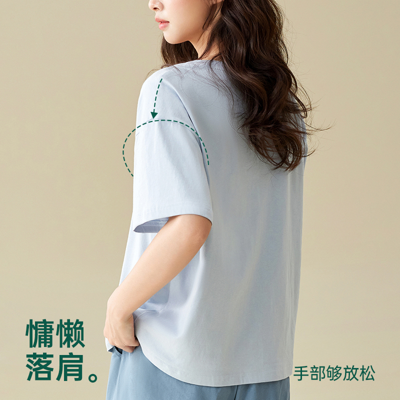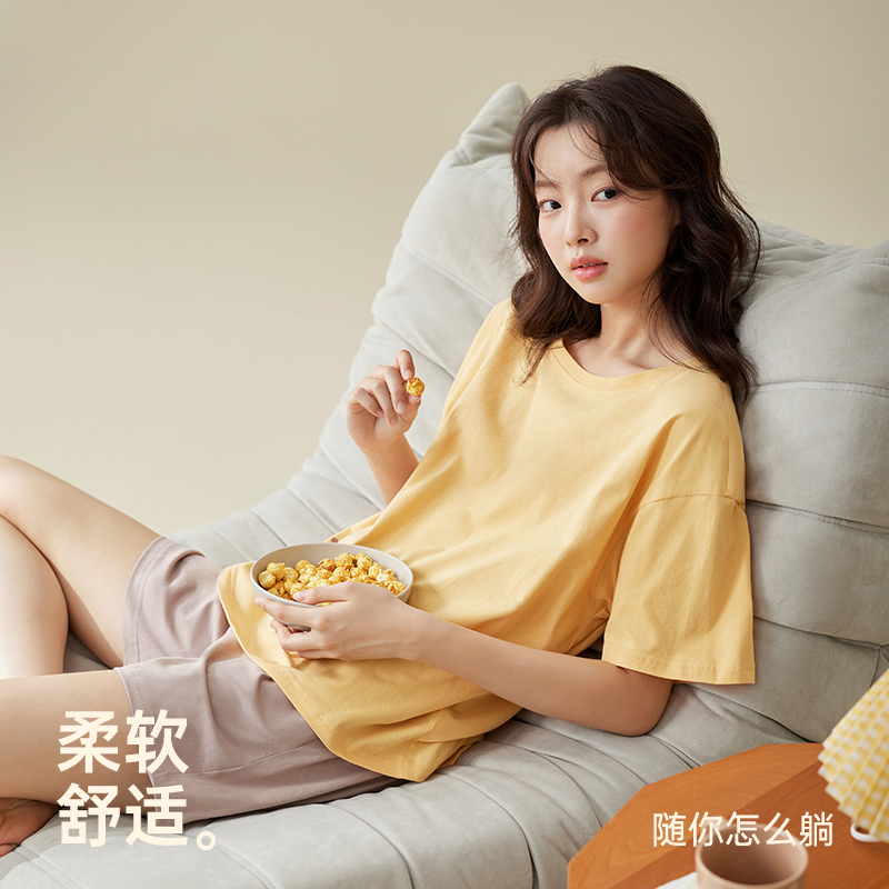 安之伴【清仓】睡衣女夏季纯棉2024新款纯色简约可外穿家居服套装