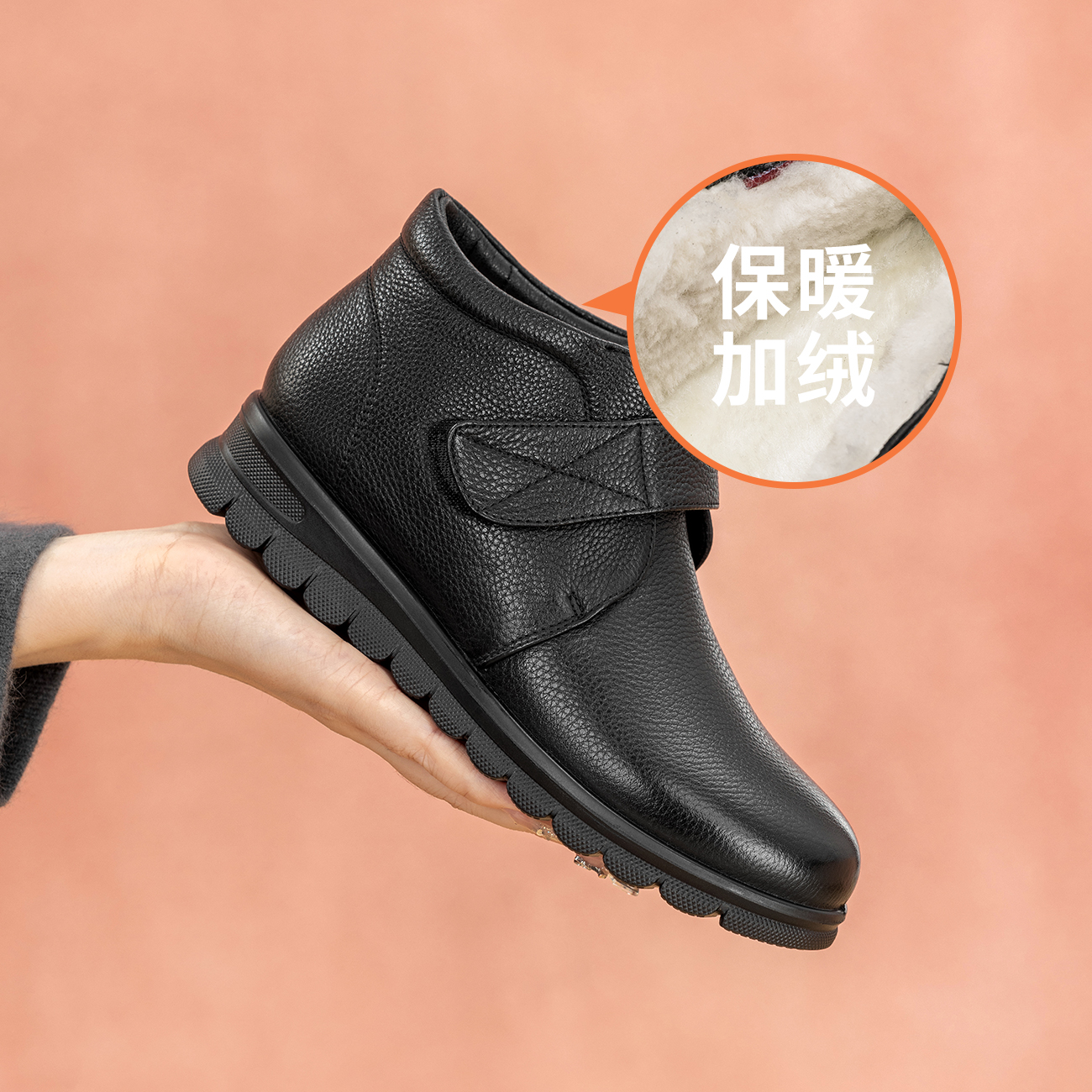 【羊羔绒+真皮】奥康女鞋 冬季新品套脚保暖妈妈鞋棉鞋女冬季加绒