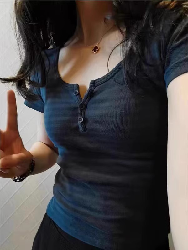 Brandy Girl美式复古藏蓝色条纹短袖上衣女bm辣妹修身短款露脐T恤