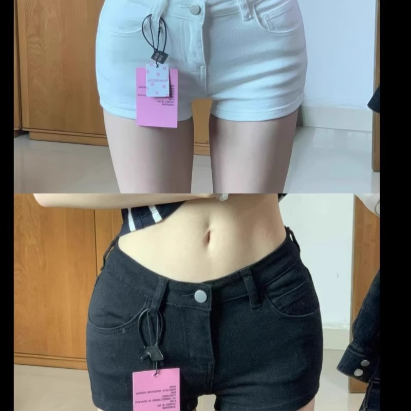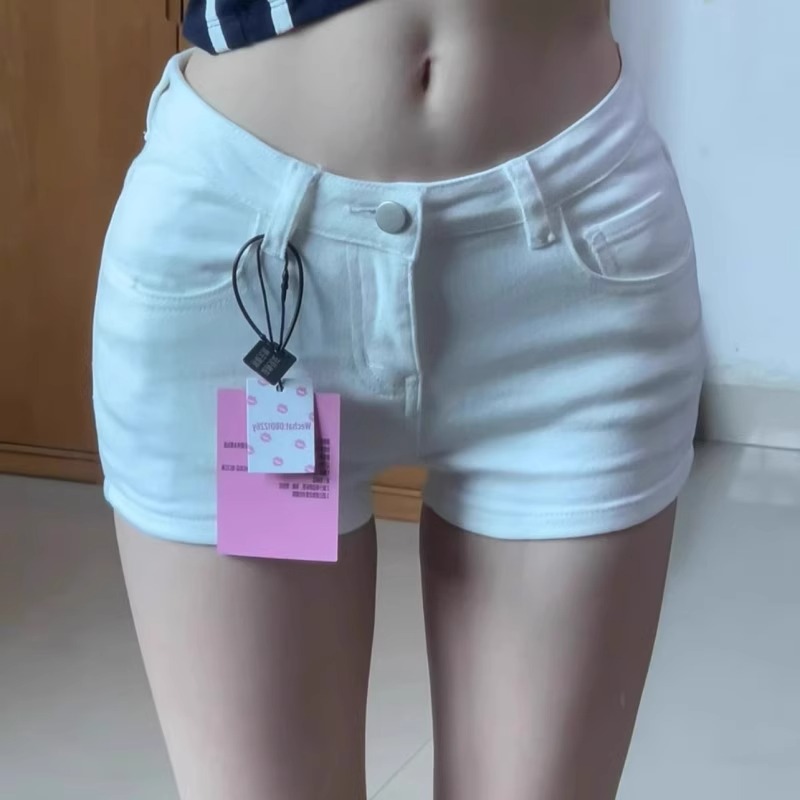 薄款小个子紧身辣妹白色牛仔超短裤女修身低腰显瘦包臂a字热裤夏