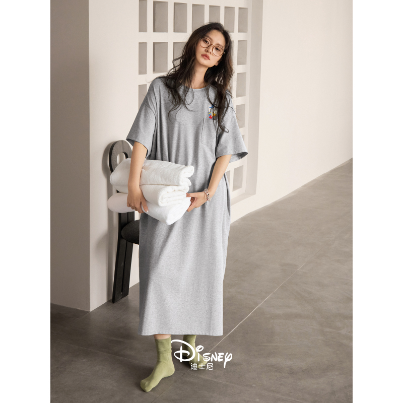 迪士尼唐老鸭睡衣女夏季短袖凉感棉睡裙休闲宽松少女中长款连衣裙
