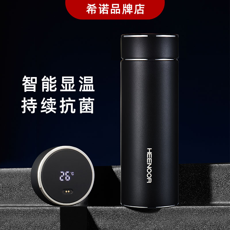 希诺高端保温杯 智能显温纳米银抗菌茶杯男女士316不锈钢品牌水杯