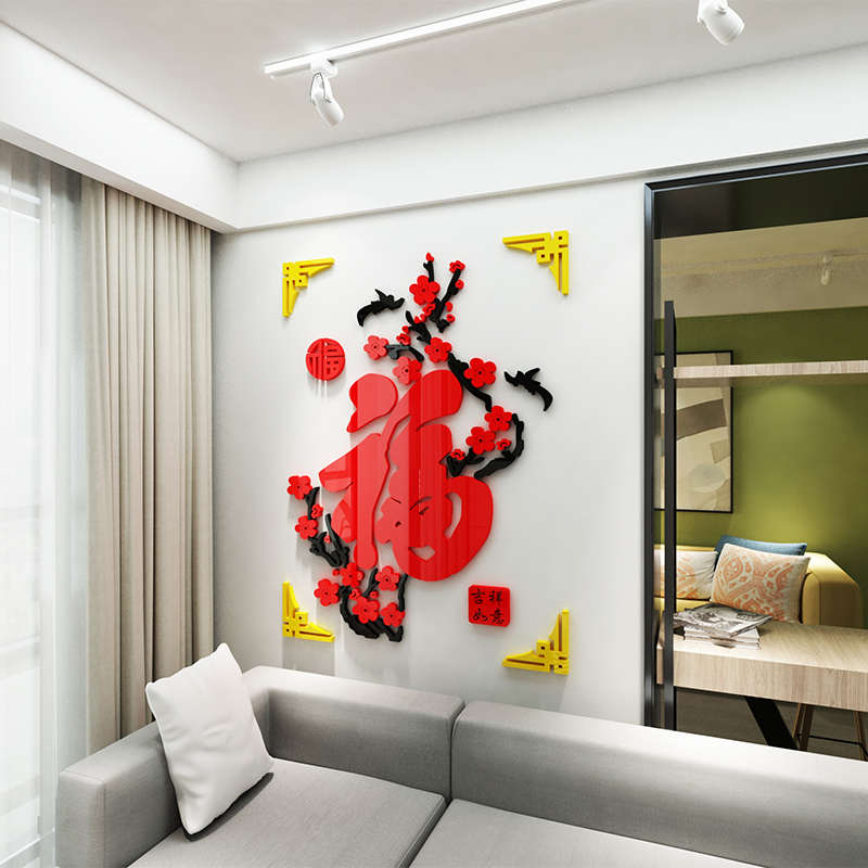3d立体墙贴客厅卧室玄关电视背景墙面装饰画亚克力贴画贴纸自粘福
