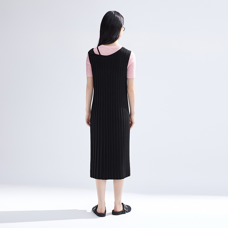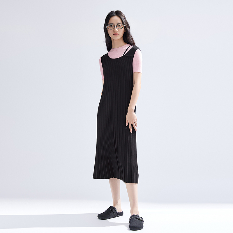 【商场同款】播黑色连衣裙女2024新款温柔叠穿针织裙BDR1LD0436