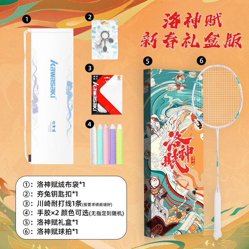 川崎洛神赋礼盒羽毛球拍碳素纤维单拍男女高磅进攻训练高颜值正品