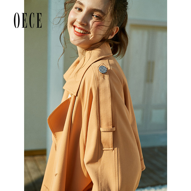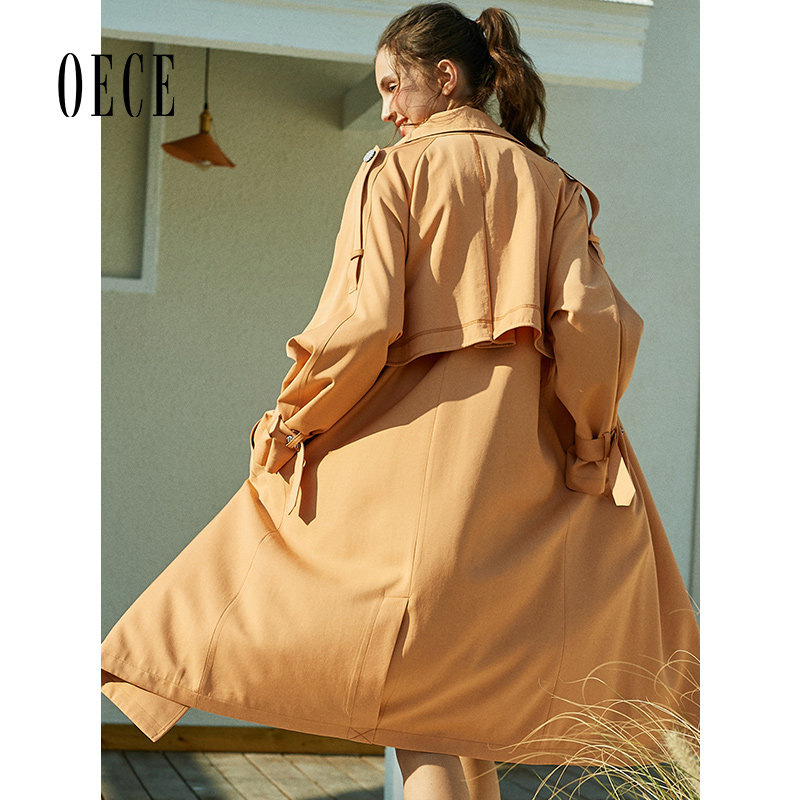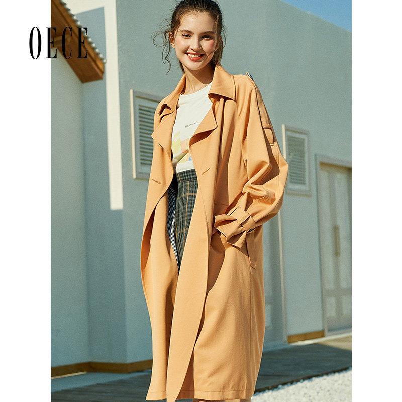 Oece春装新款女装 拉风帅气复古英伦翻领气质长款风衣外套