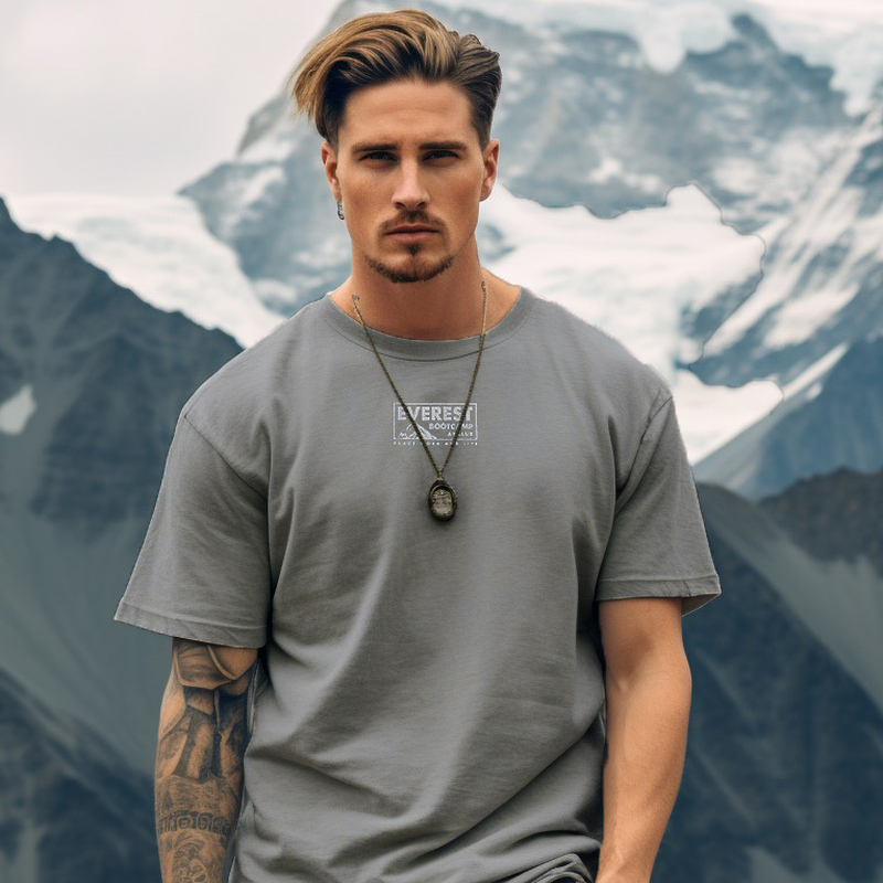 AK男装夏季新款复古珠峰BootCamp洗旧印花落肩纯棉圆领短袖T恤男