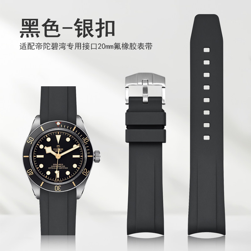 适用帝舵表带氟橡胶TUDOR碧湾1985可乐圈GMT青铜BB弧口20mm蝴蝶扣