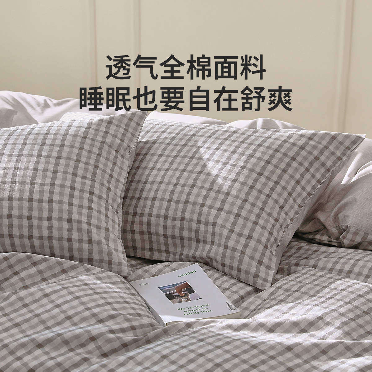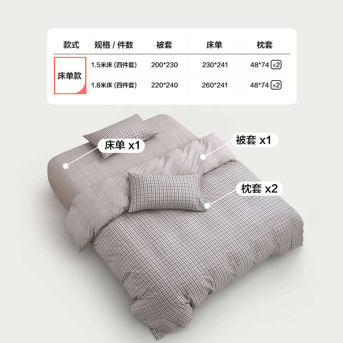 罗莱生活LOVO乐蜗家纺全棉纯棉四件套时尚条格简约被套床单双人床