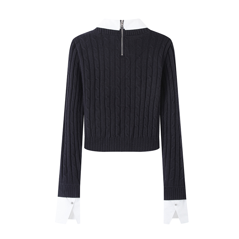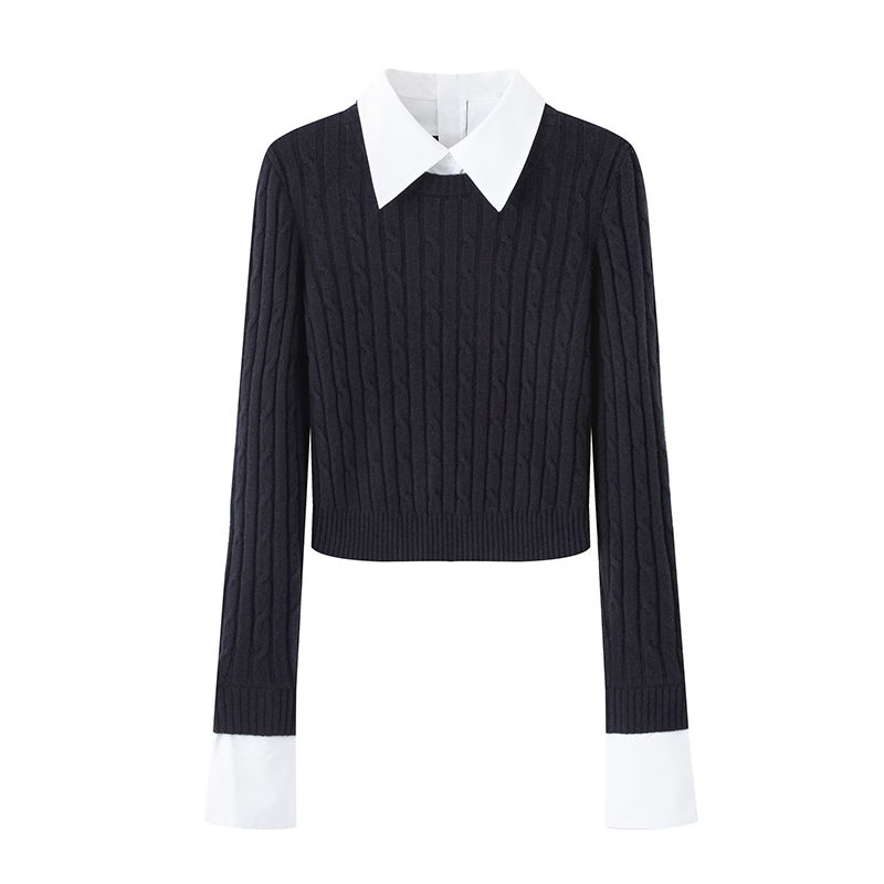 艾诺丝商场同款2025秋季新款拼接假两件针织衫女气质毛衣AR803015