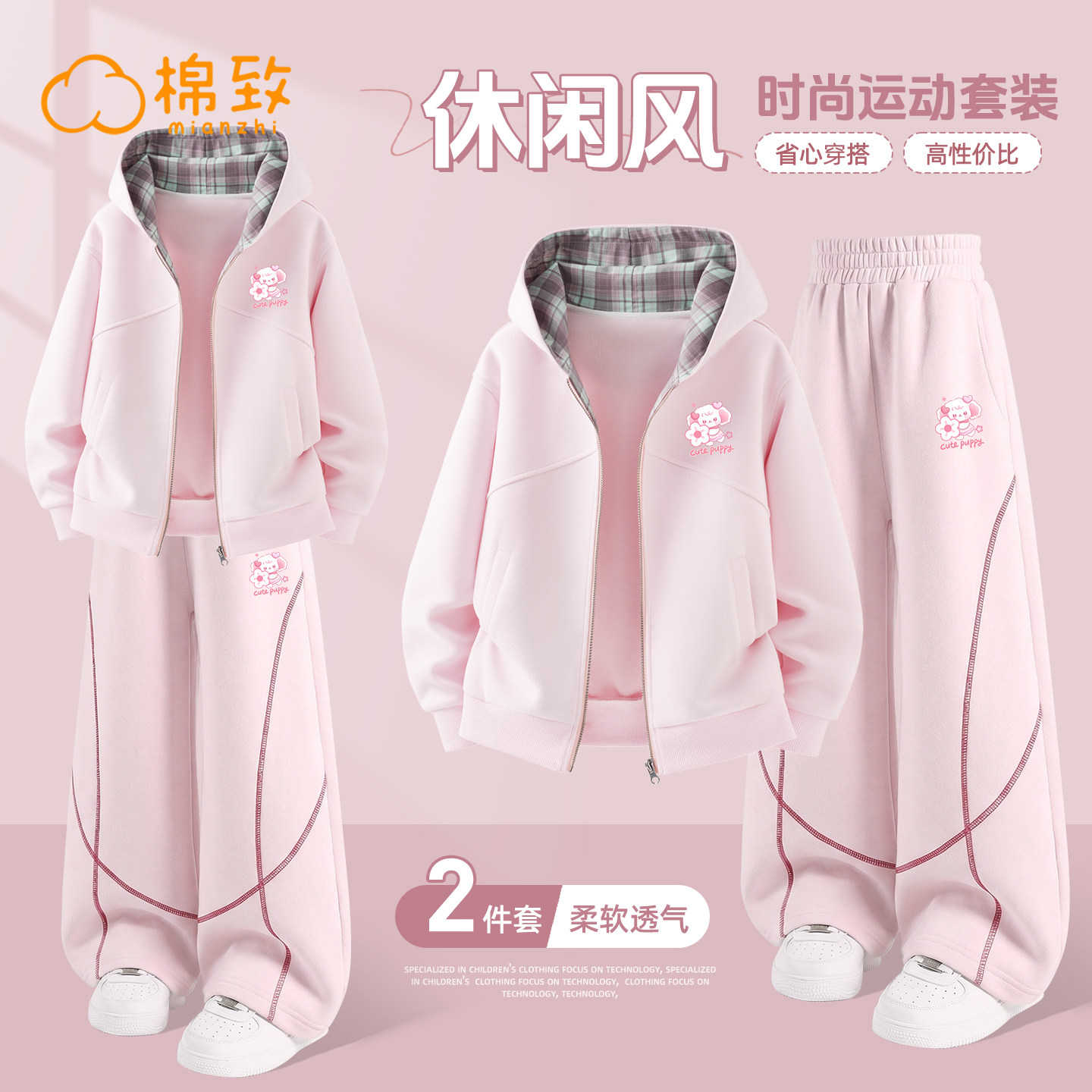 棉致女童春装套装春秋款2026新款春季休闲运动女孩外套儿童运动装