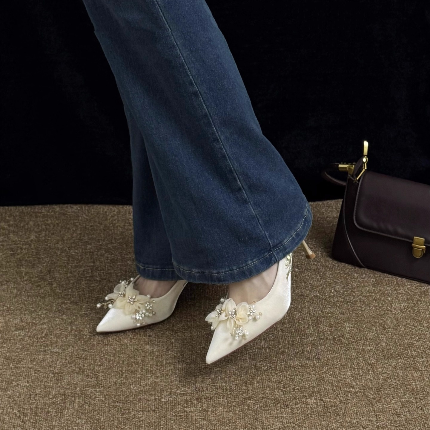法式绝美刺绣高跟鞋女尖头气质优雅婚纱新娘婚鞋中式秀禾细跟单鞋