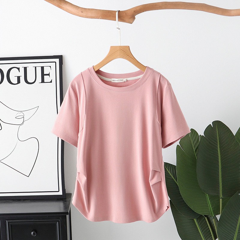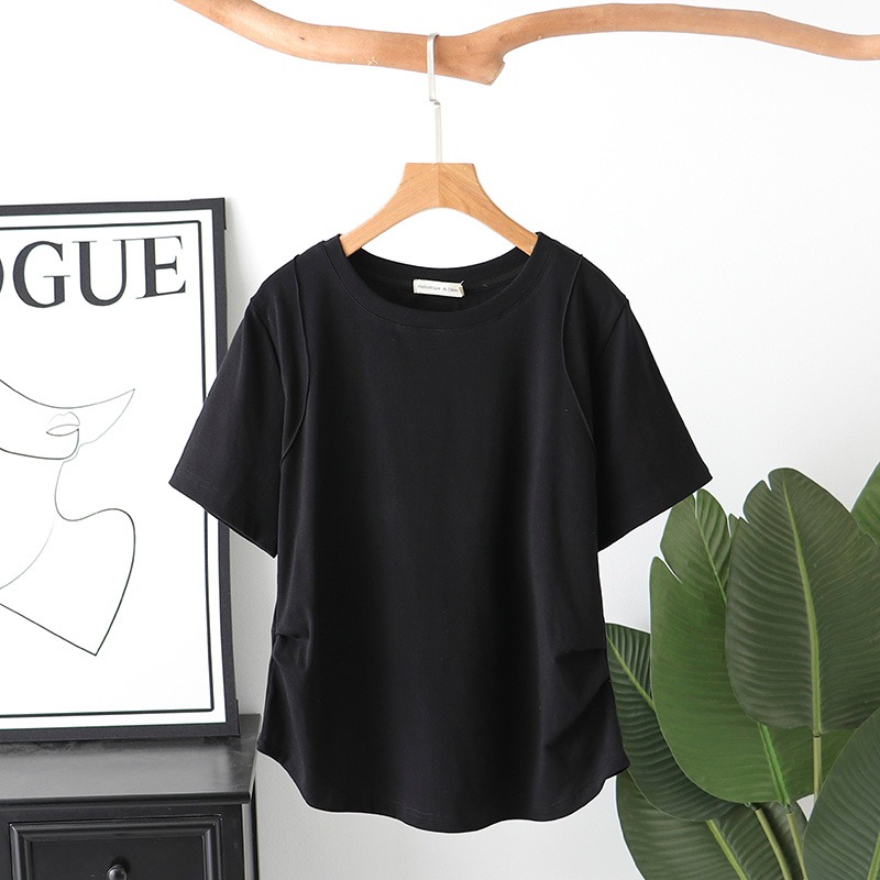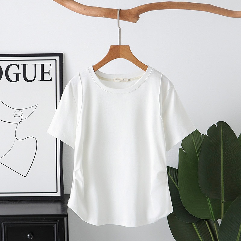 300斤大码女装胖mm褶皱正肩恤女夏季新款显瘦百搭设计感短袖上衣2