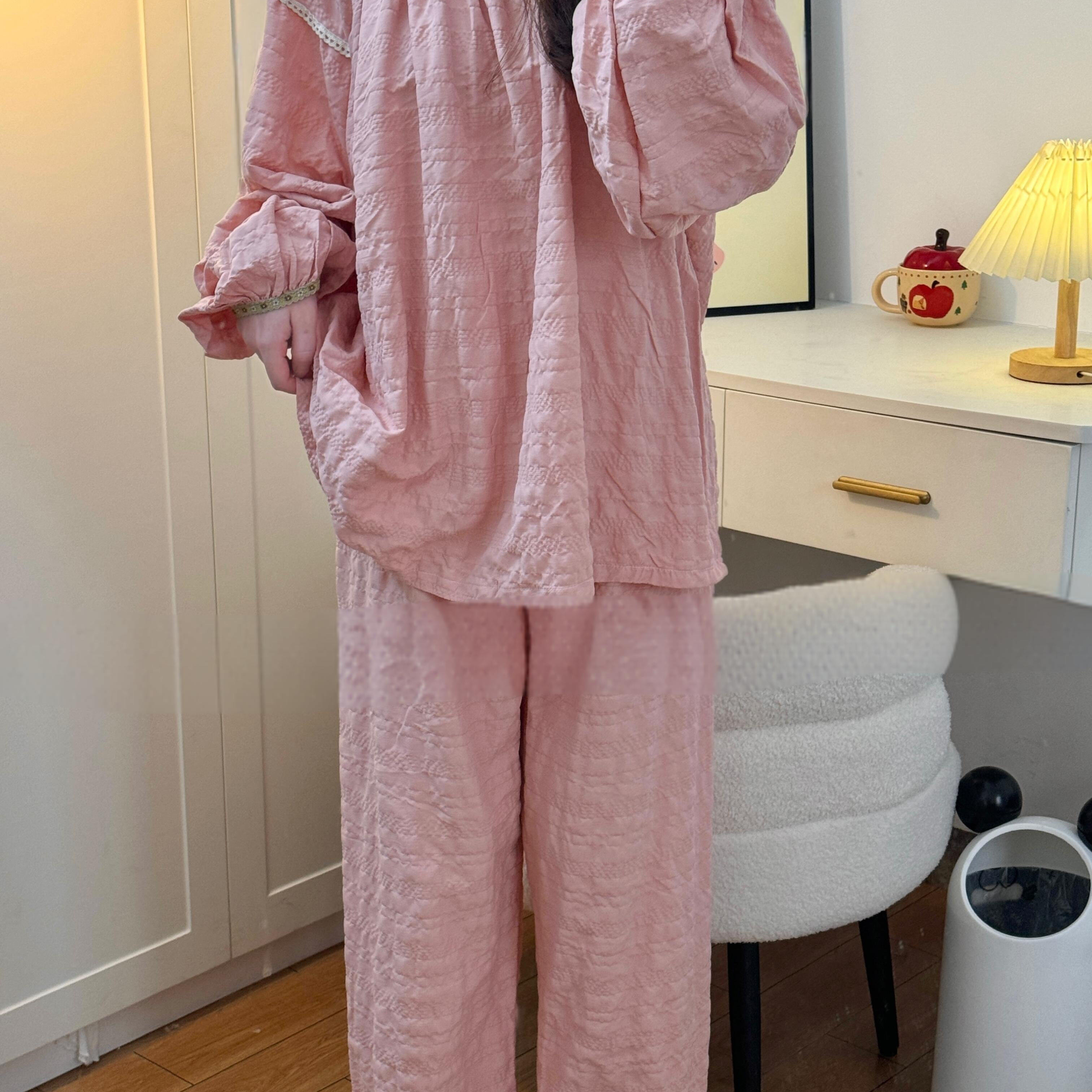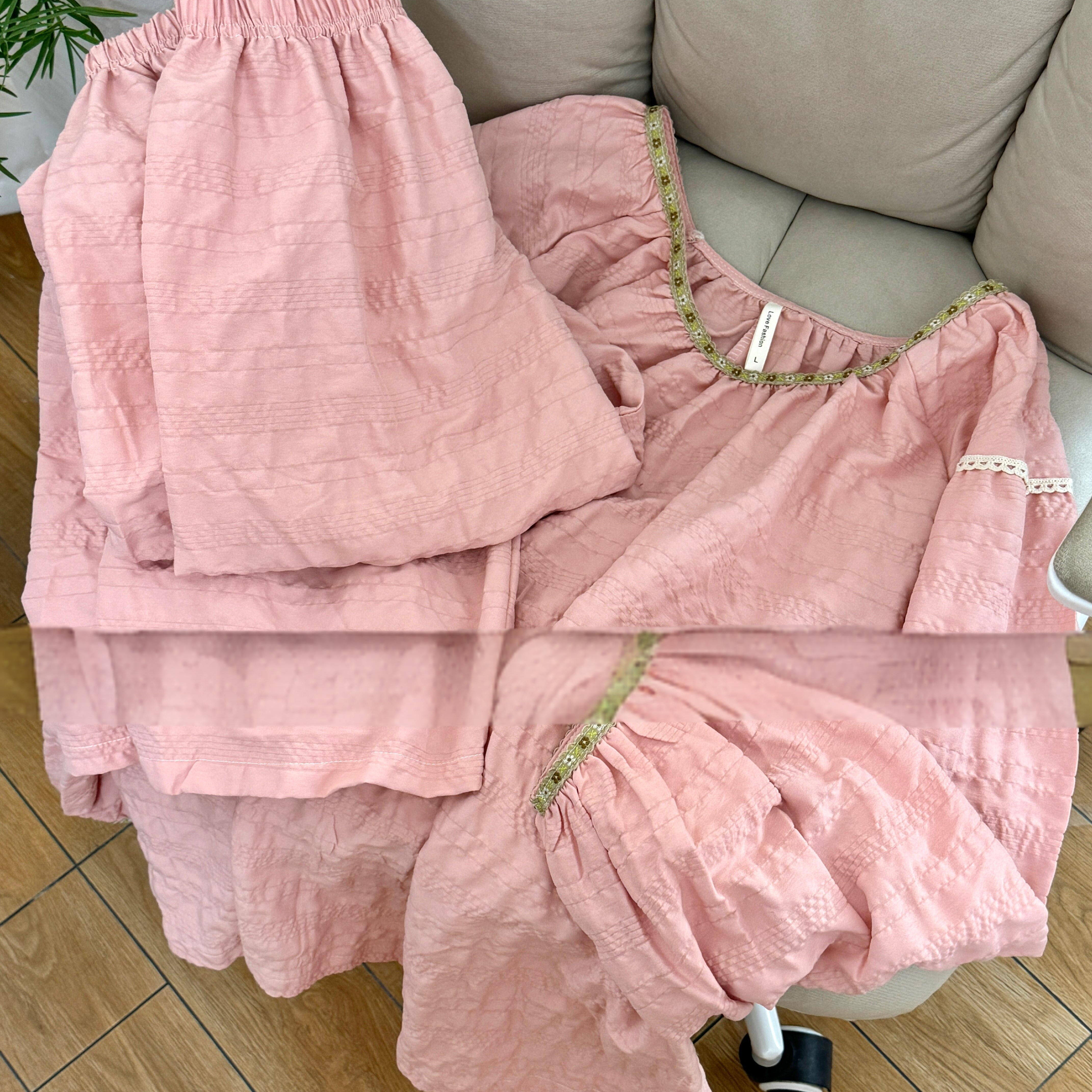 【桃之夭夭】春秋新款国风提花云朵棉少女睡衣套装家居服可外穿