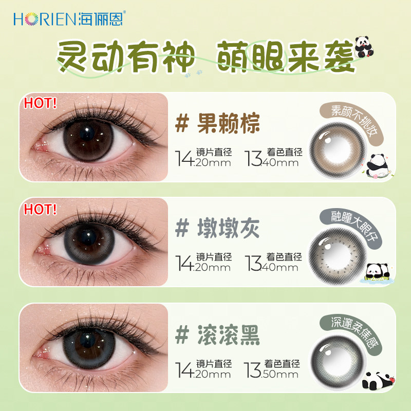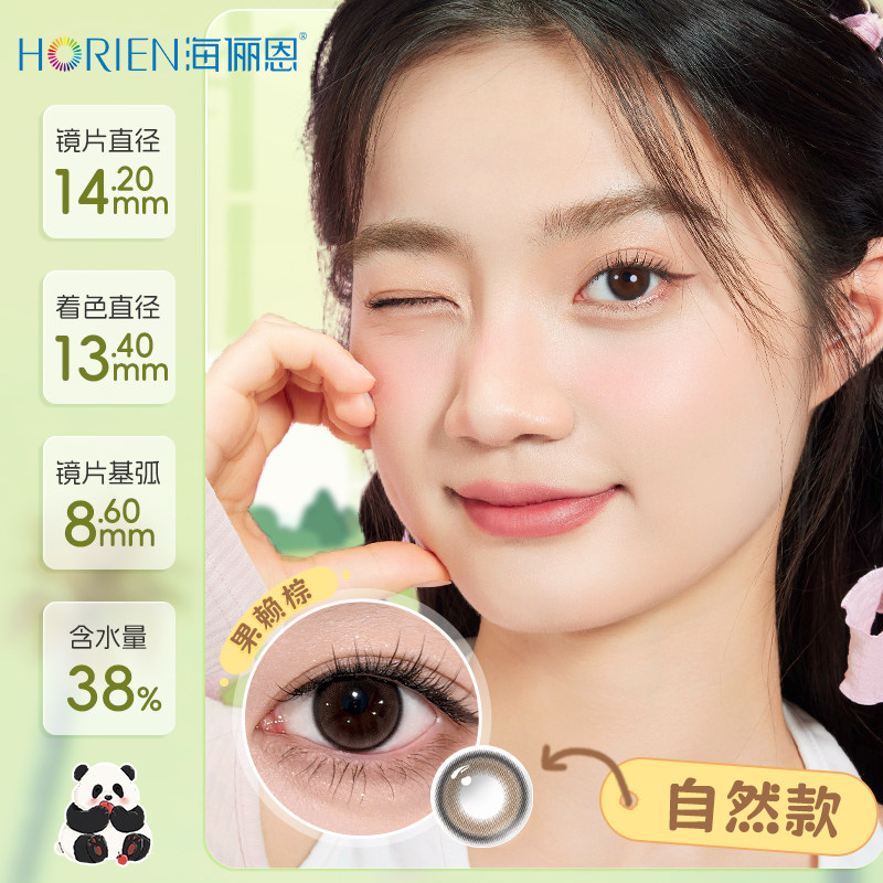 【淘宝秒杀】海俪恩萌宠熊猫美瞳月抛2片果赖棕彩色近视隐形眼镜