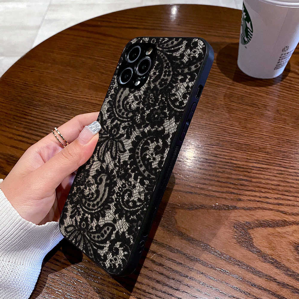 适用oppofind x8 x7 x6 x5 pro/x9/Find X8 Pro手机壳硅胶创意皮纹全包防摔保护套女挂绳新款黑色蕾丝花纹