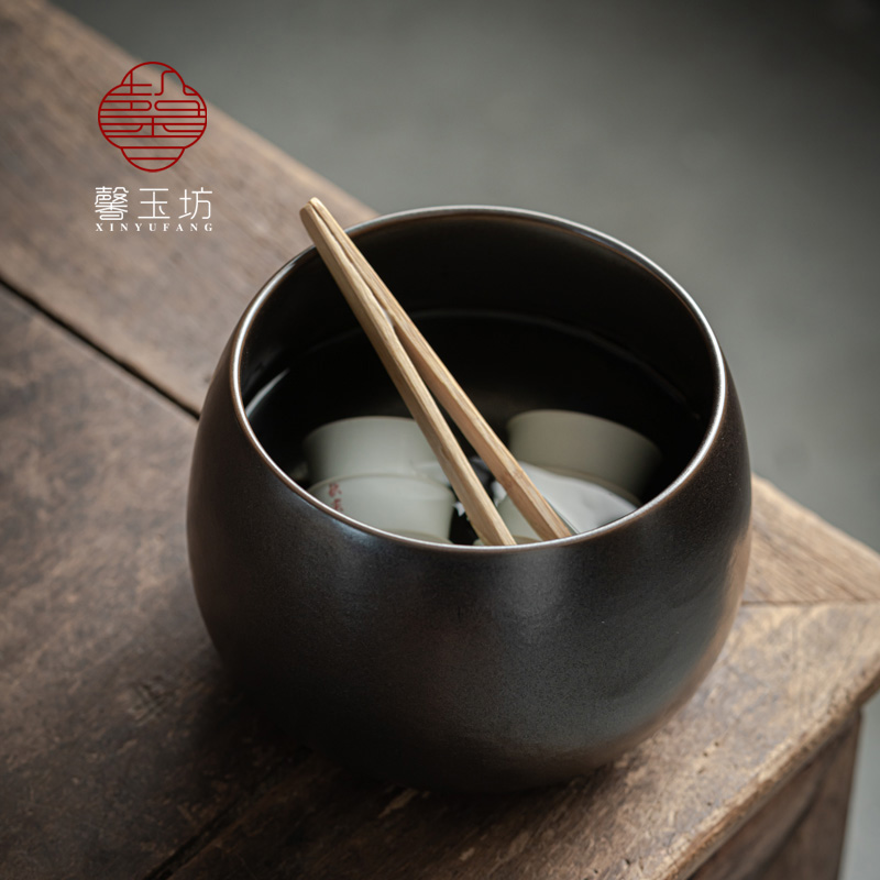 馨玉坊日式茶洗陶瓷茶渣缸家用大小号笔洗功夫茶具建水花盆水孟
