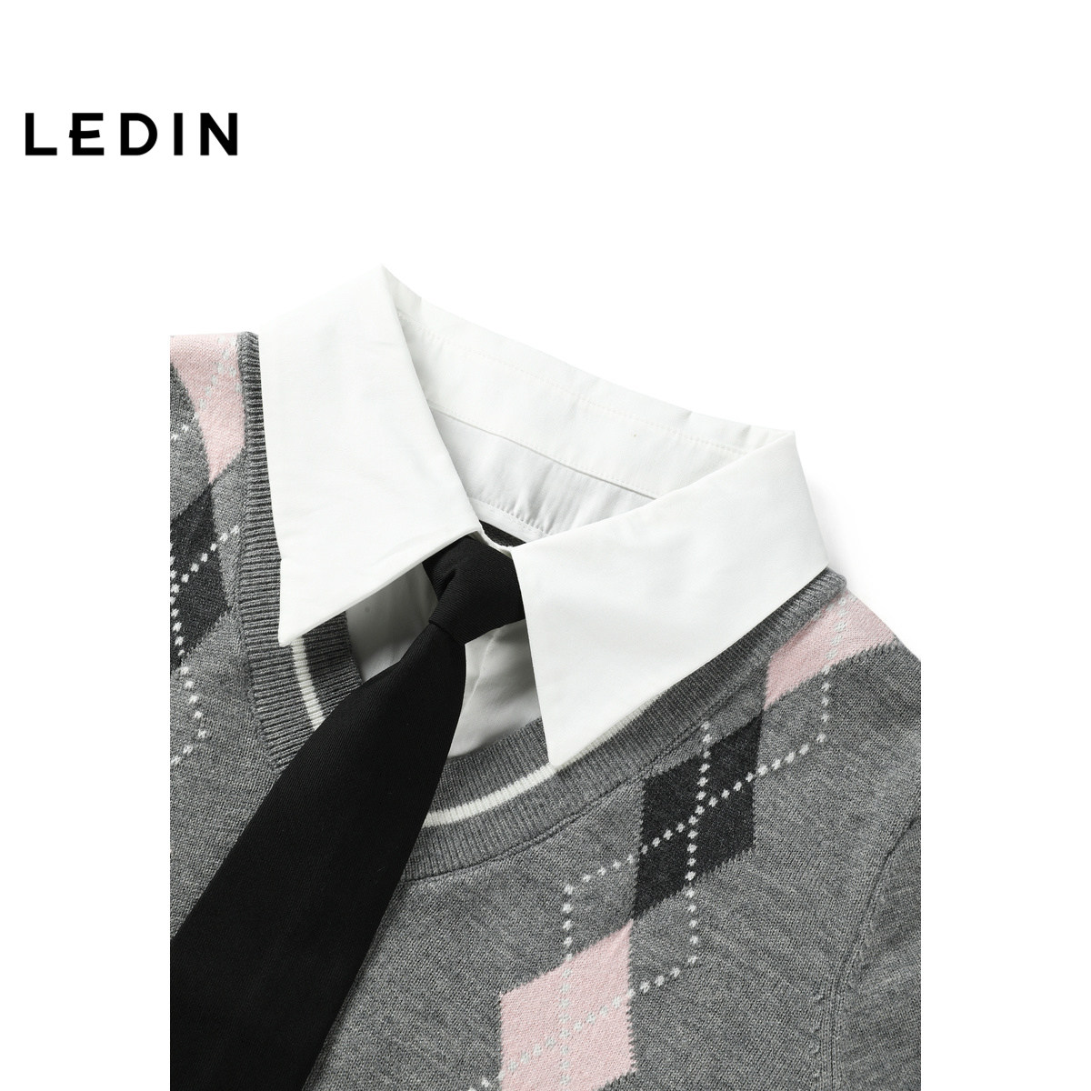 【商场同款】乐町学院风假两件连衣裙冬新款菱格针织裙C2FAE4320
