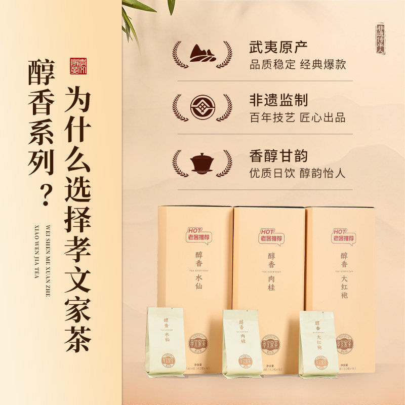【热卖】孝文家茶醇香大红袍肉桂茶武夷岩茶老客推荐盒装水仙茶叶