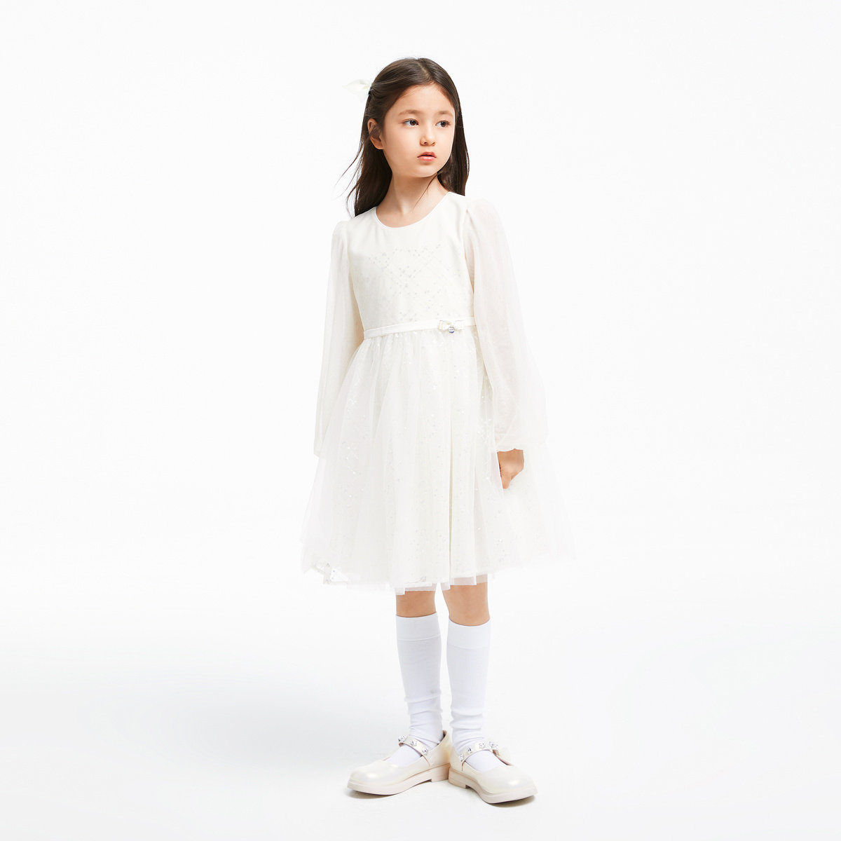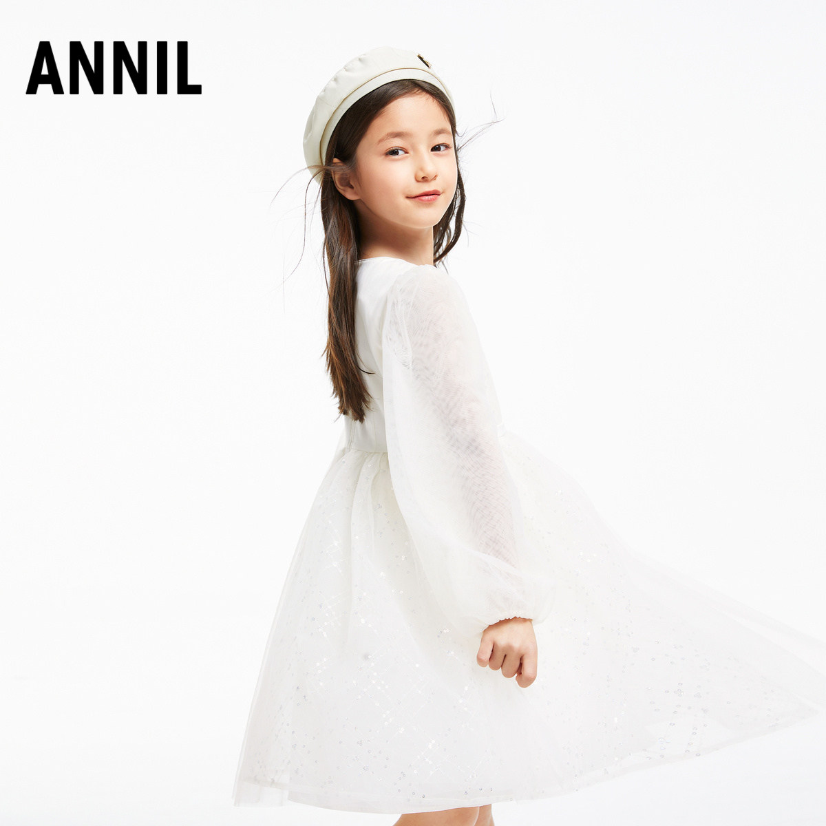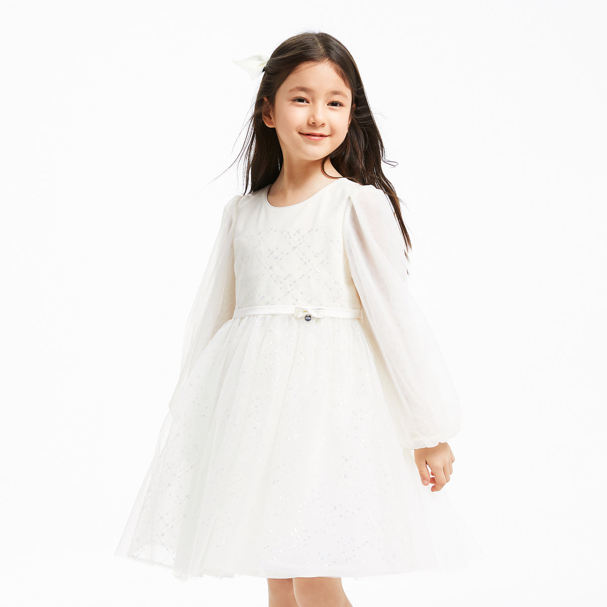 安奈儿女童长袖礼裙连衣裙