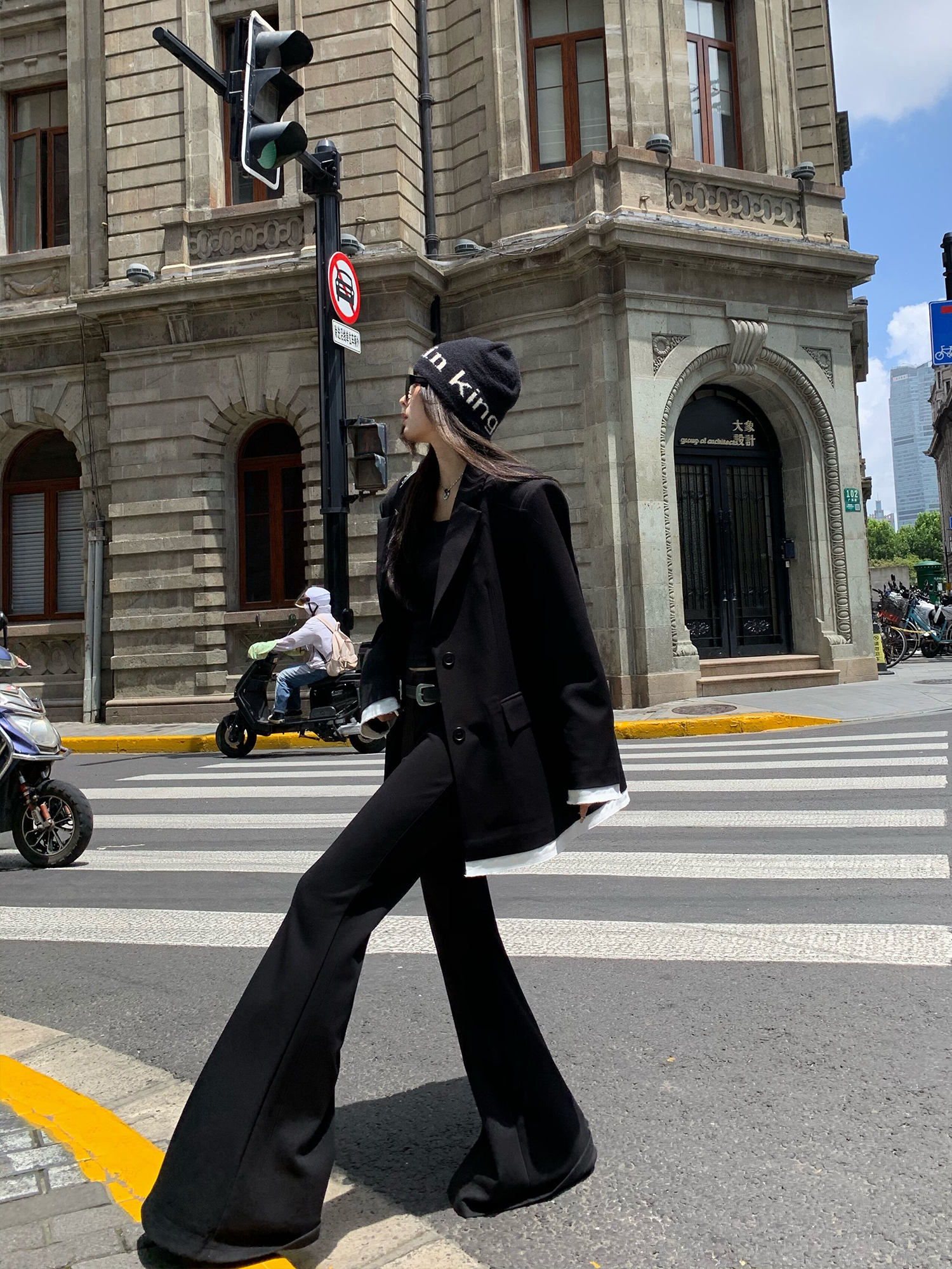 辰米范 高腰修身喇叭裤女新款秋季直筒弹力针织裤休闲马蹄裤长裤