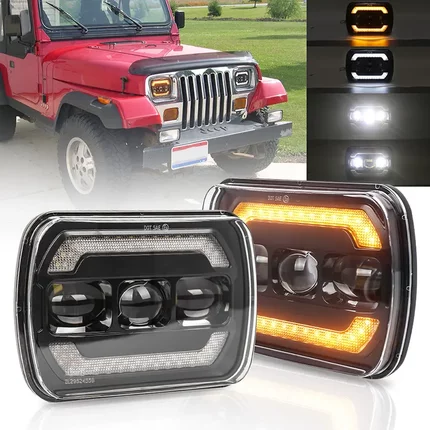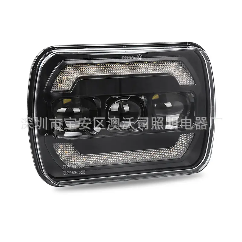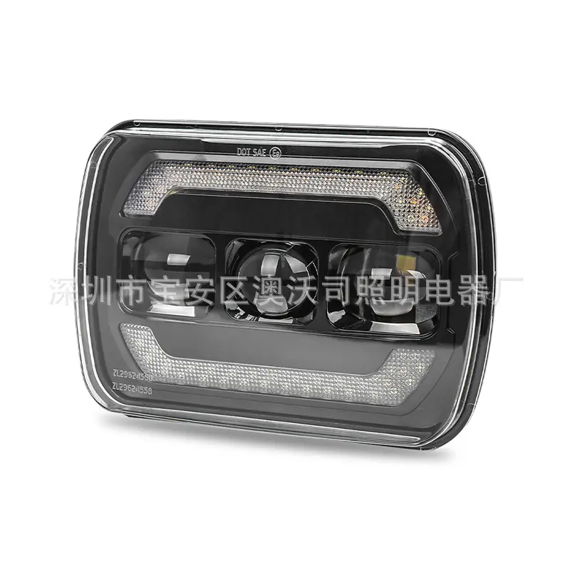 摩托车汽车改装车灯LED透镜7寸方头灯带远近光牧马人切诺基前大灯