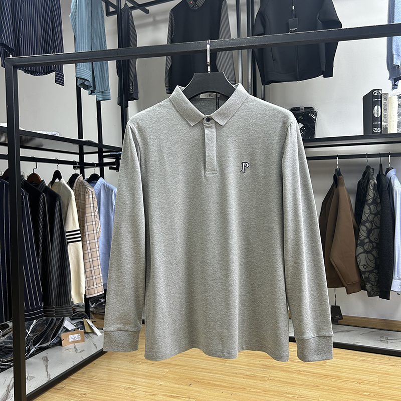 珠地料棉氨混纺商务轻奢修身长袖POLO衫秋季新品修身刺绣体恤衫男