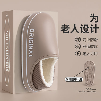 利达妮中老年人防水包跟棉拖鞋女冬季2026新款室内家居保暖棉鞋男
