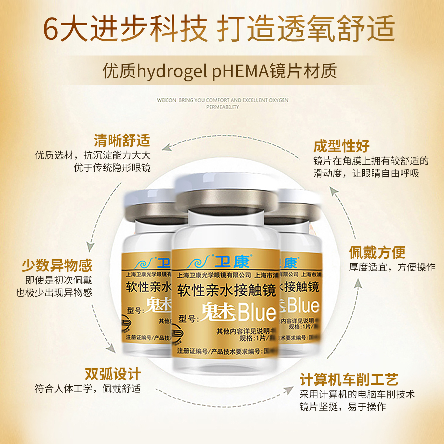 卫康隐形眼镜一年抛近视带高度数男小直径金装魅Blue官方旗舰店JD