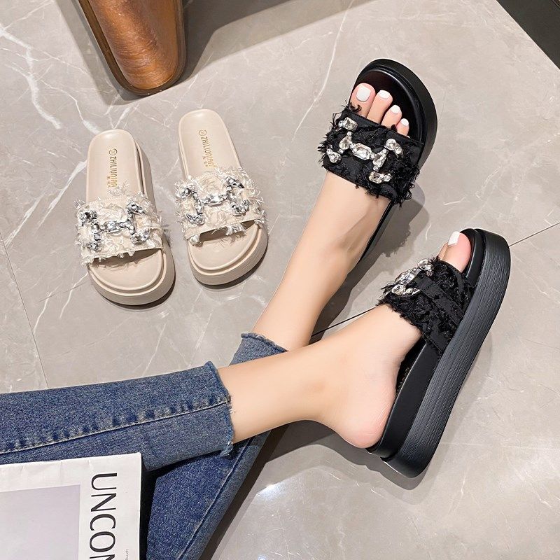 厚底凉拖鞋女夏外穿2024新款网红松糕一字拖配裙子大码女鞋41一43