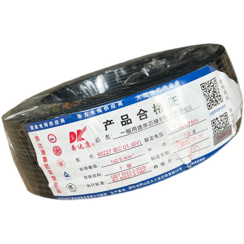 奔达康电线电缆BV1 1.5 2.5 4 6平方单芯单股铜芯国标家装工程线