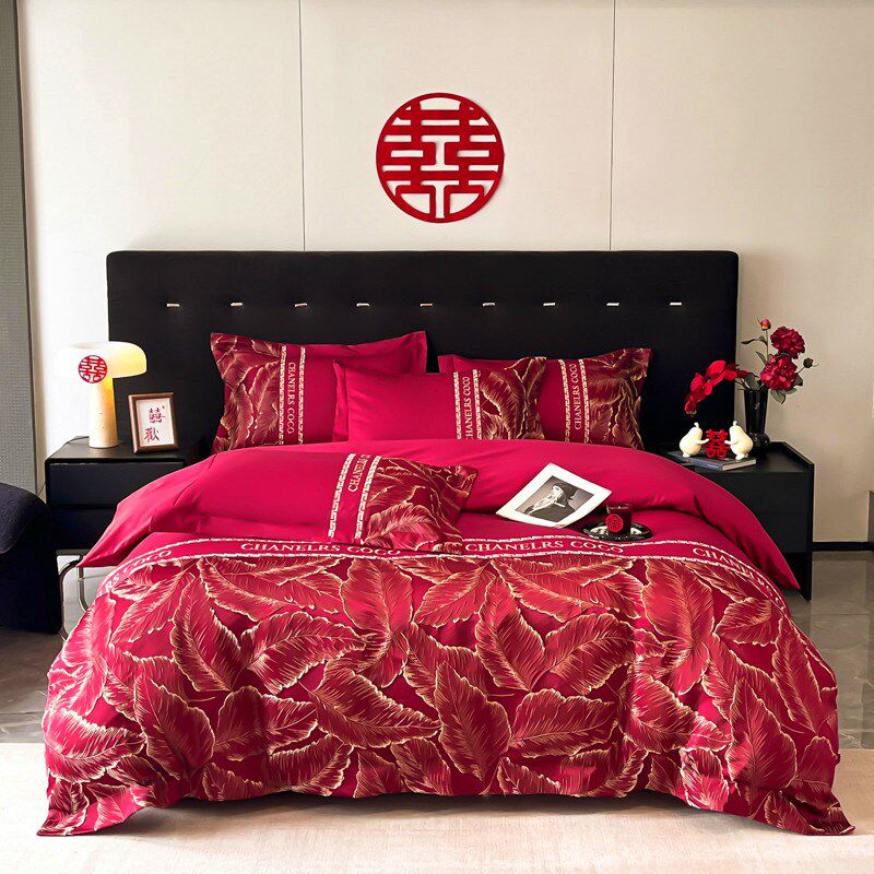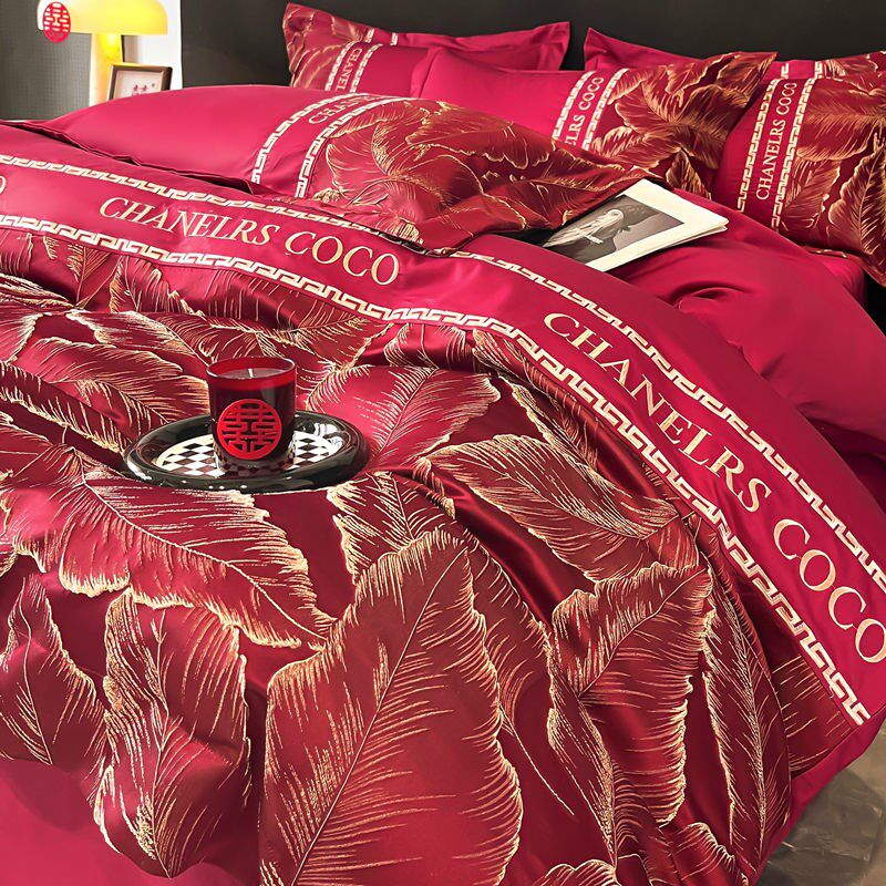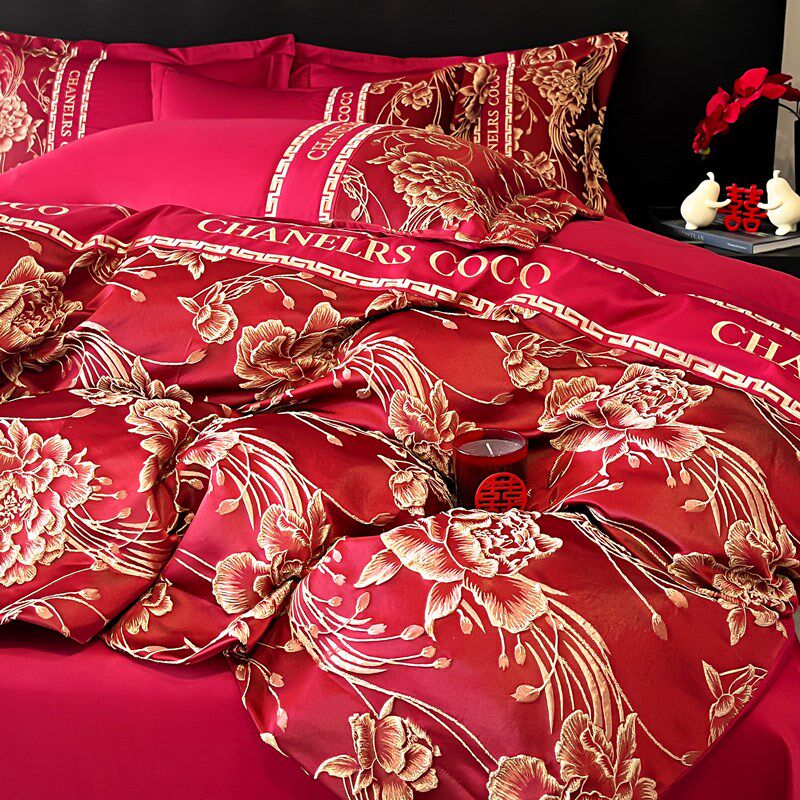 高档结婚四件套大红色婚房喜被床单新婚备婚被套纯棉婚庆床上用品