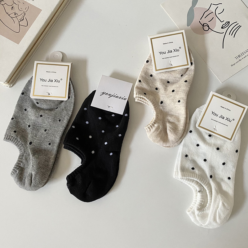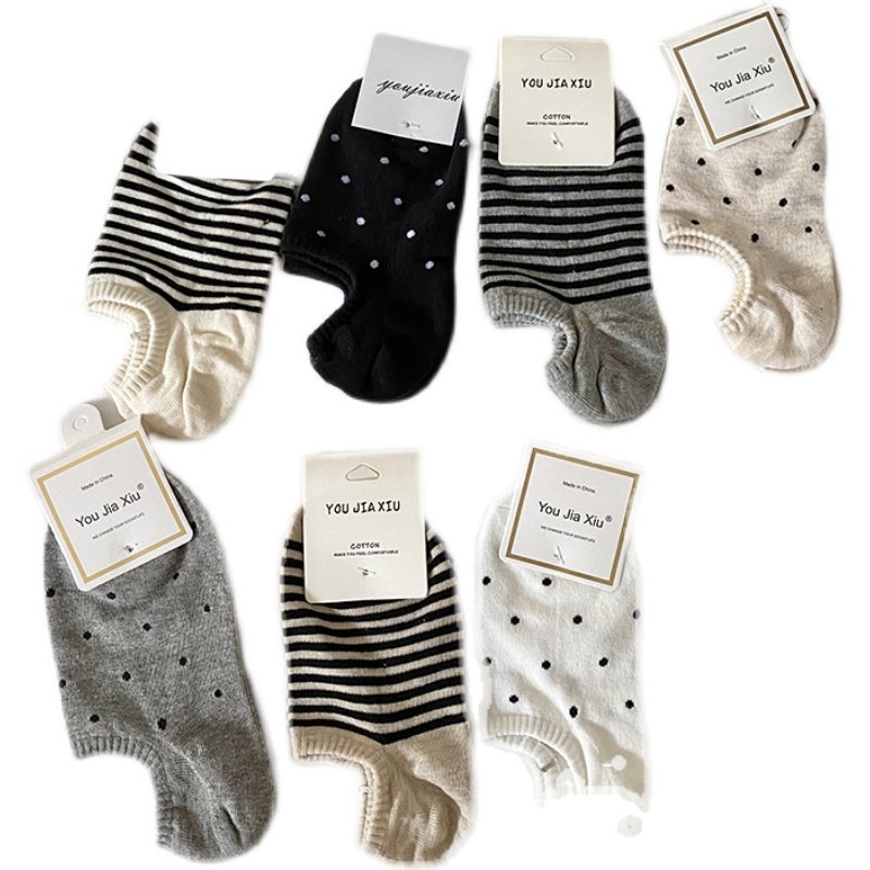 日系条纹船袜女夏季薄款ins潮流纯棉圆点防滑隐形短袜子夏天百搭