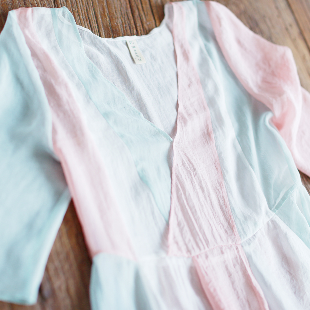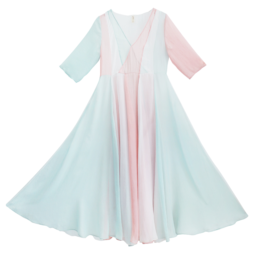 复古文艺汉服宽松拼色雪纺连衣裙